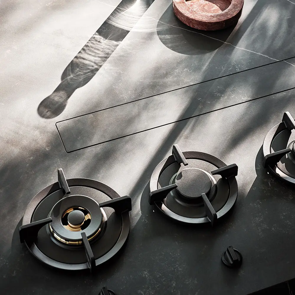 Unlike traditional cooktops, PITT burners are positioned independently, creating generous space around each unit. This allows every pot and pan to sit comfortably without crowding, giving you the freedom to prepare anything from a simple meal to an elaborate multi-course feast. The design enhances both efficiency and aesthetics, culminating in a bespoke kitchen environment that is as functional as it is striking.